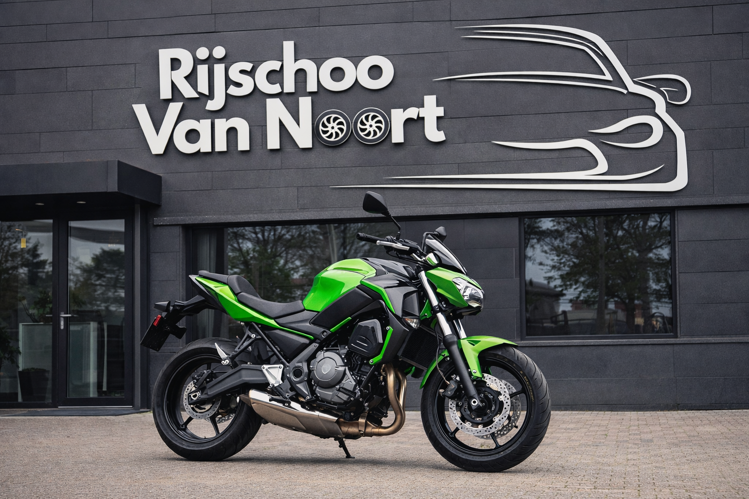 Wij maken gebruik van de nieuwste Kawasaki Z650, een hele wendbare, betrouwbare en sportieve motor om het op te leren!